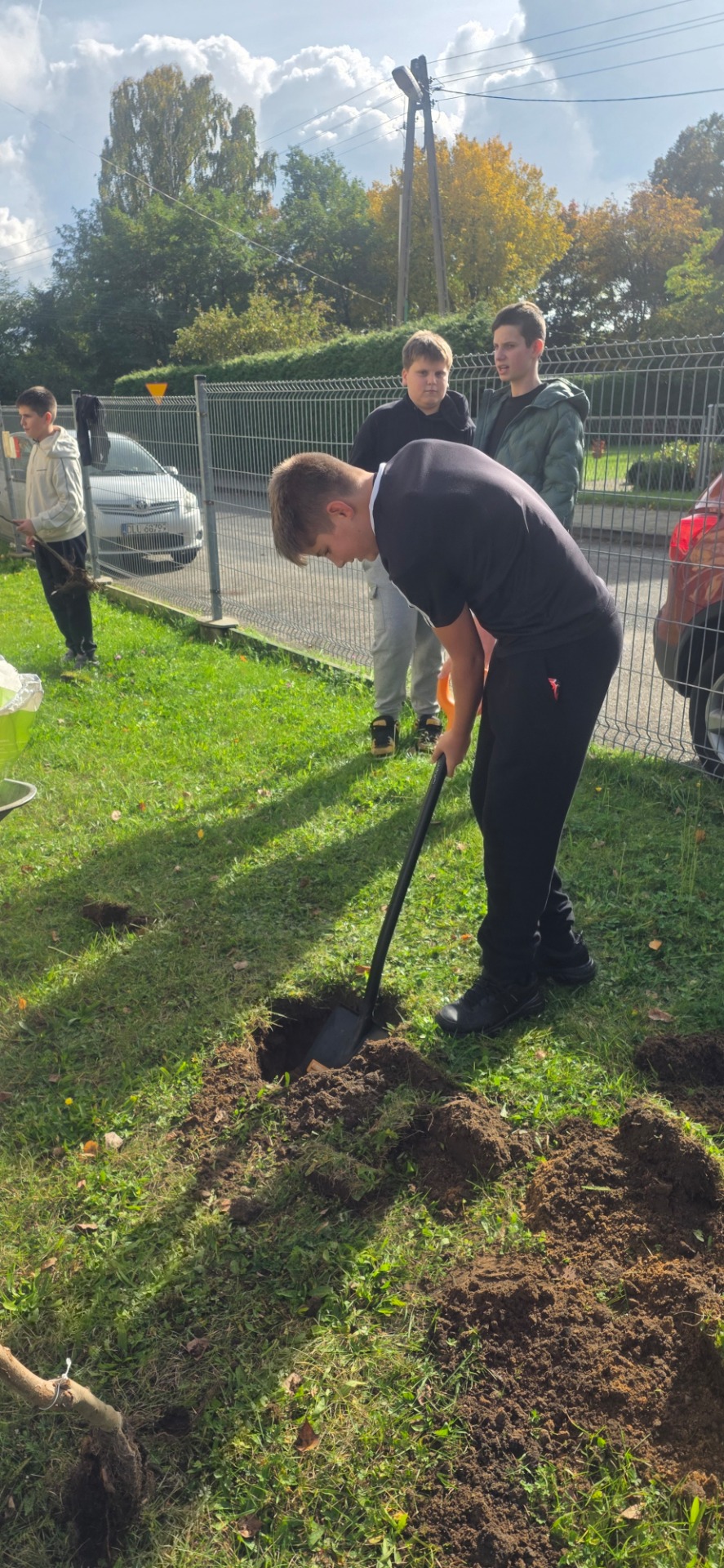 W naszej szkole, w ramach ekoprojektu EKO POSTAWA TO PODSTAWA uczniowie i uczennice zaangażowali się w sadzenie drzew owocowych. Projekt ten to nie tylko praktyczna lekcja przyrody, ale przede wszystkim inwestycja w przyszłość i bioróżnorodność. Pod okiem nauczyciela nasi szkolni ekolodzy zamienili podręczniki na szpadle i z wielkim zapałem przystąpili do pracy podczas, której zgłębili wiedzę na temat: