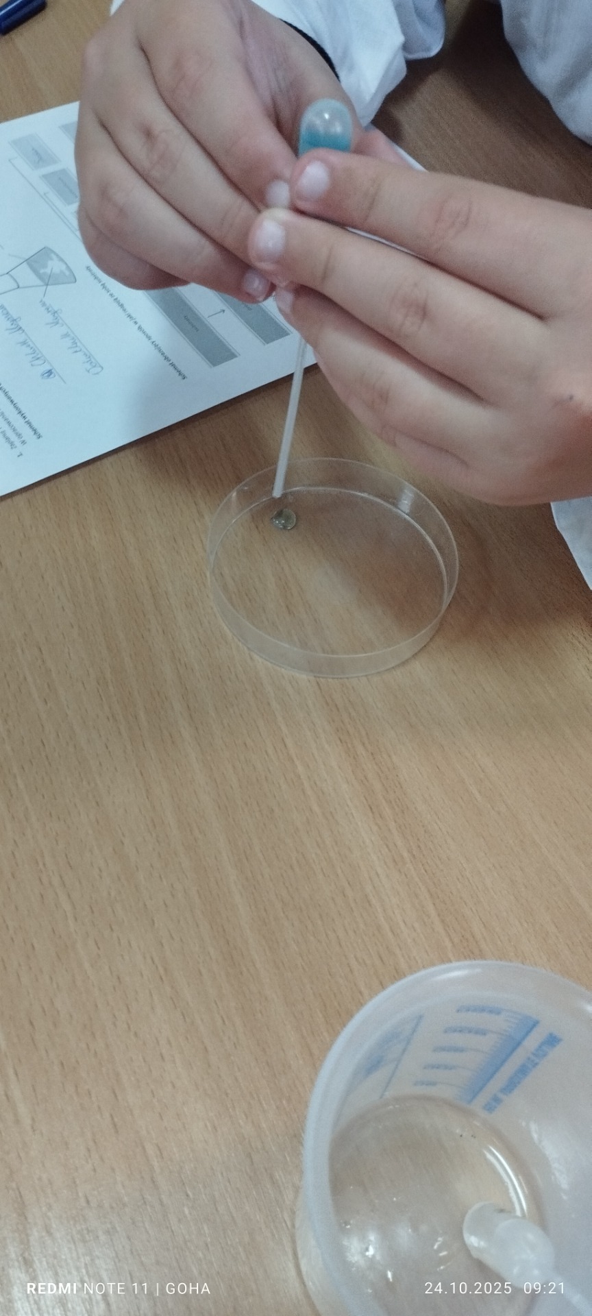 W doświadczeniu wykorzystano roztwór wodorotlenku sodu oraz roztwory soli różnych metali: chlorku żelaza(III), chlorku wapnia i siarczanu(VI) miedzi(II). Na szalce Petriego uczniowie nanosili po kilka kropli poszczególnych roztworów, a następnie dodawali do nich roztwór wodorotlenku sodu. Zaobserwowano powstawanie osadów o różnych barwach – będących wodorotlenkami odpowiednich metali.