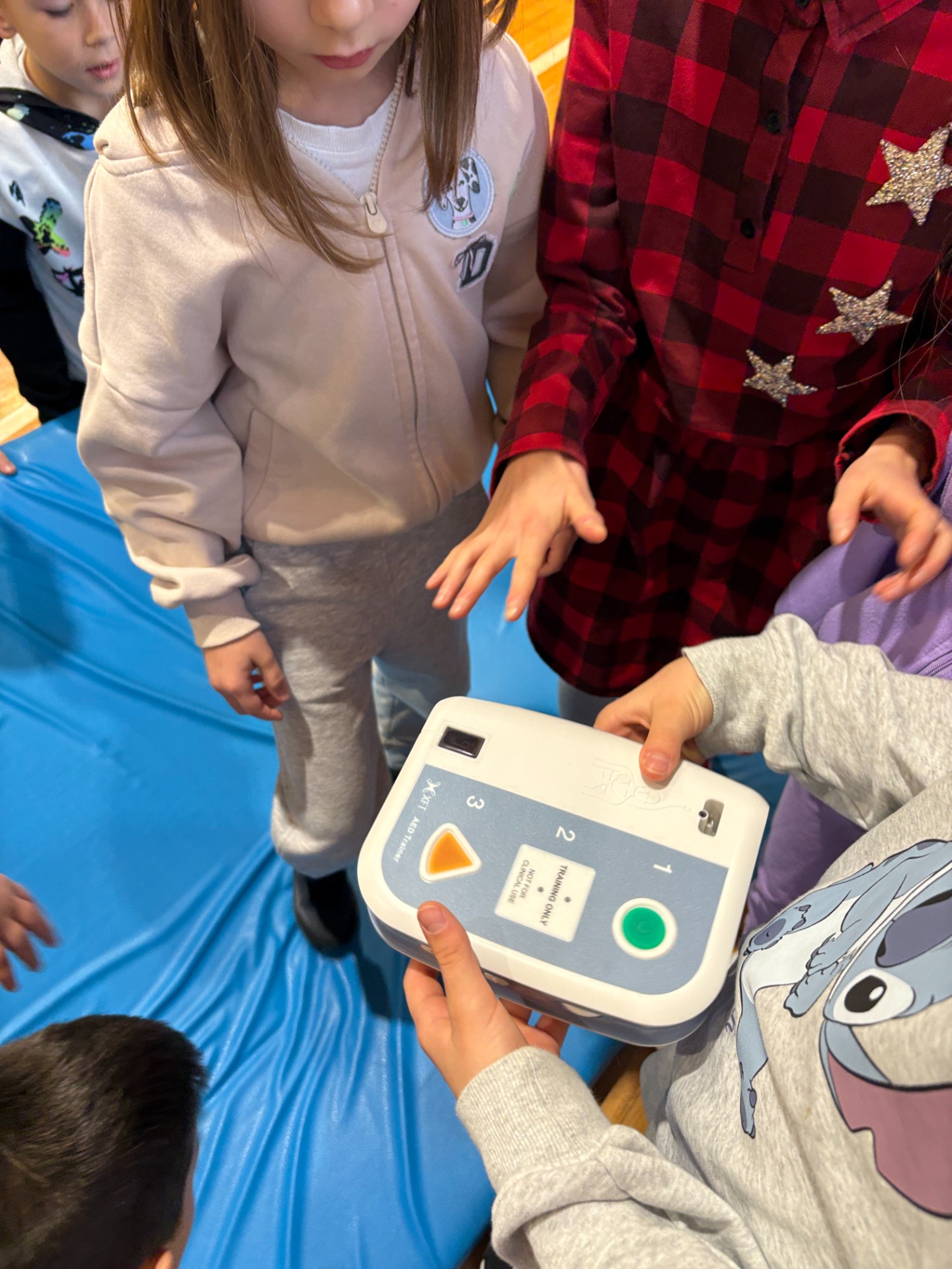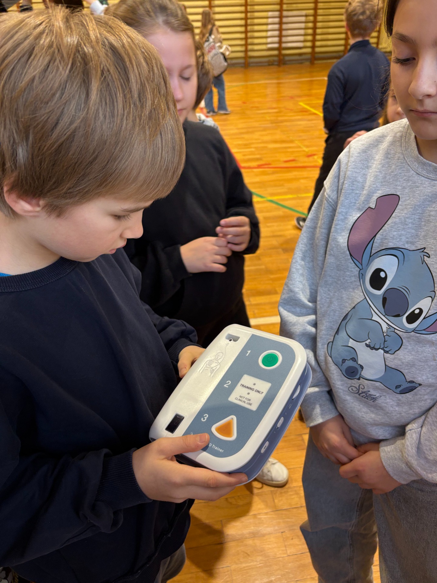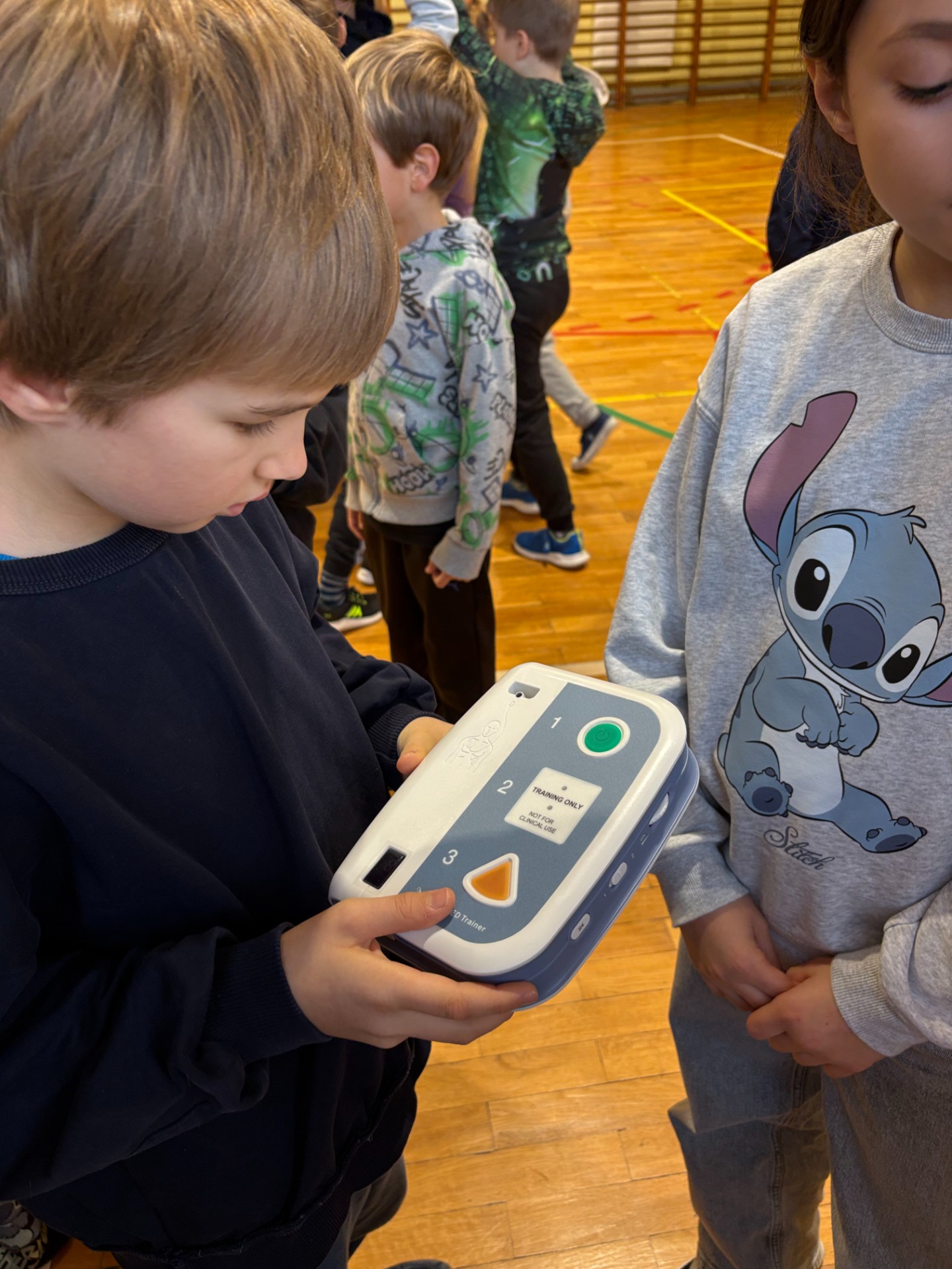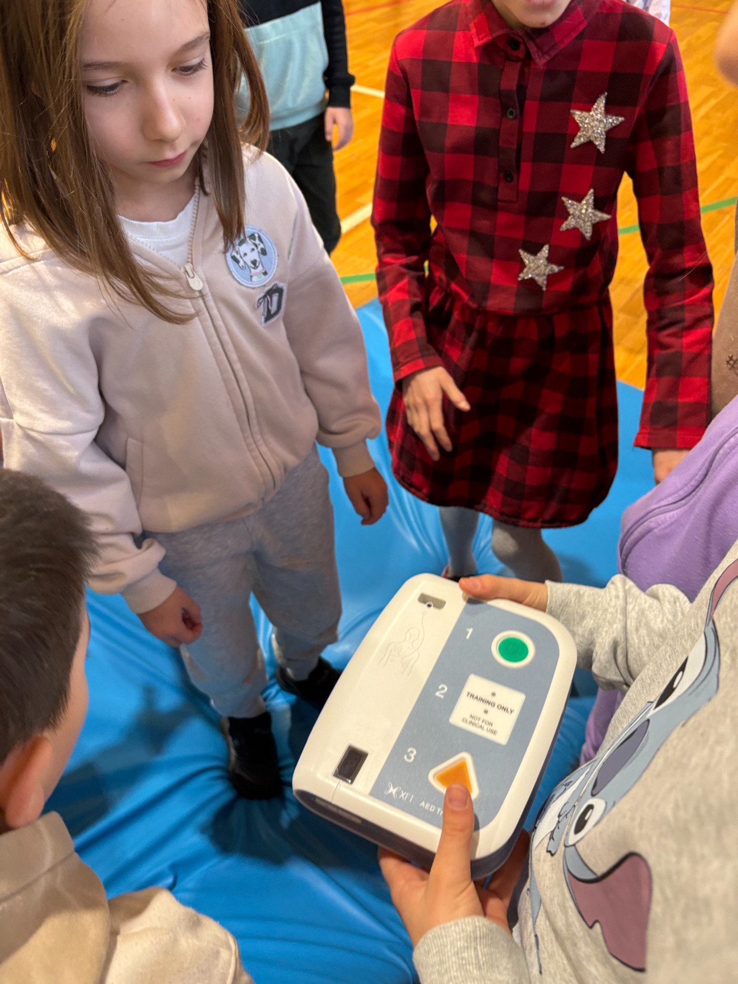 Defibrylator szkoleniowy – pozwalający uczniom poznać obsługę AED,