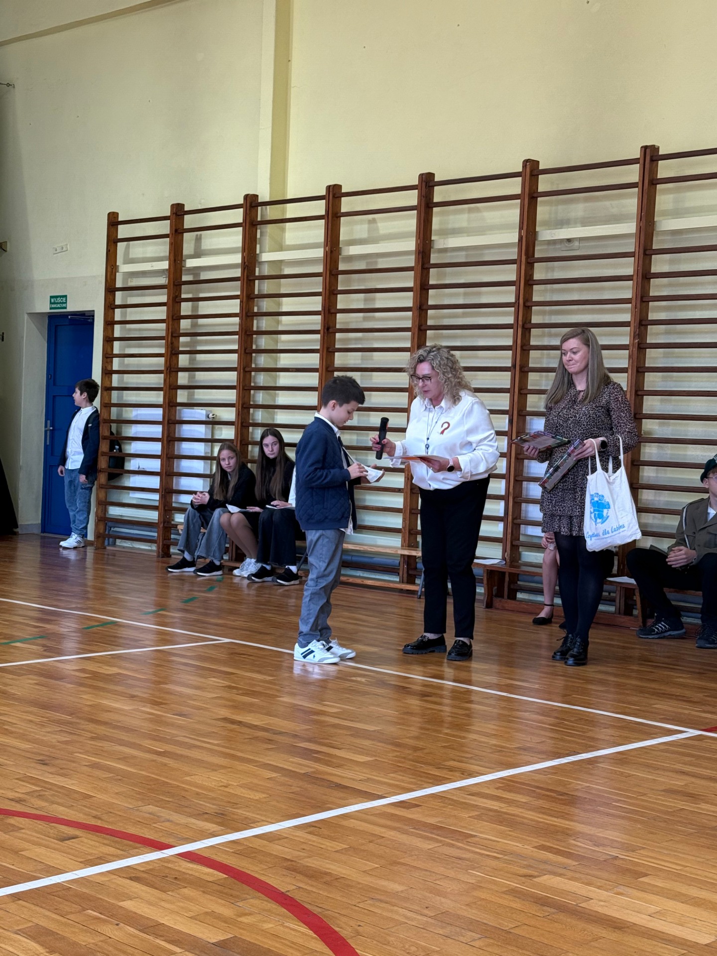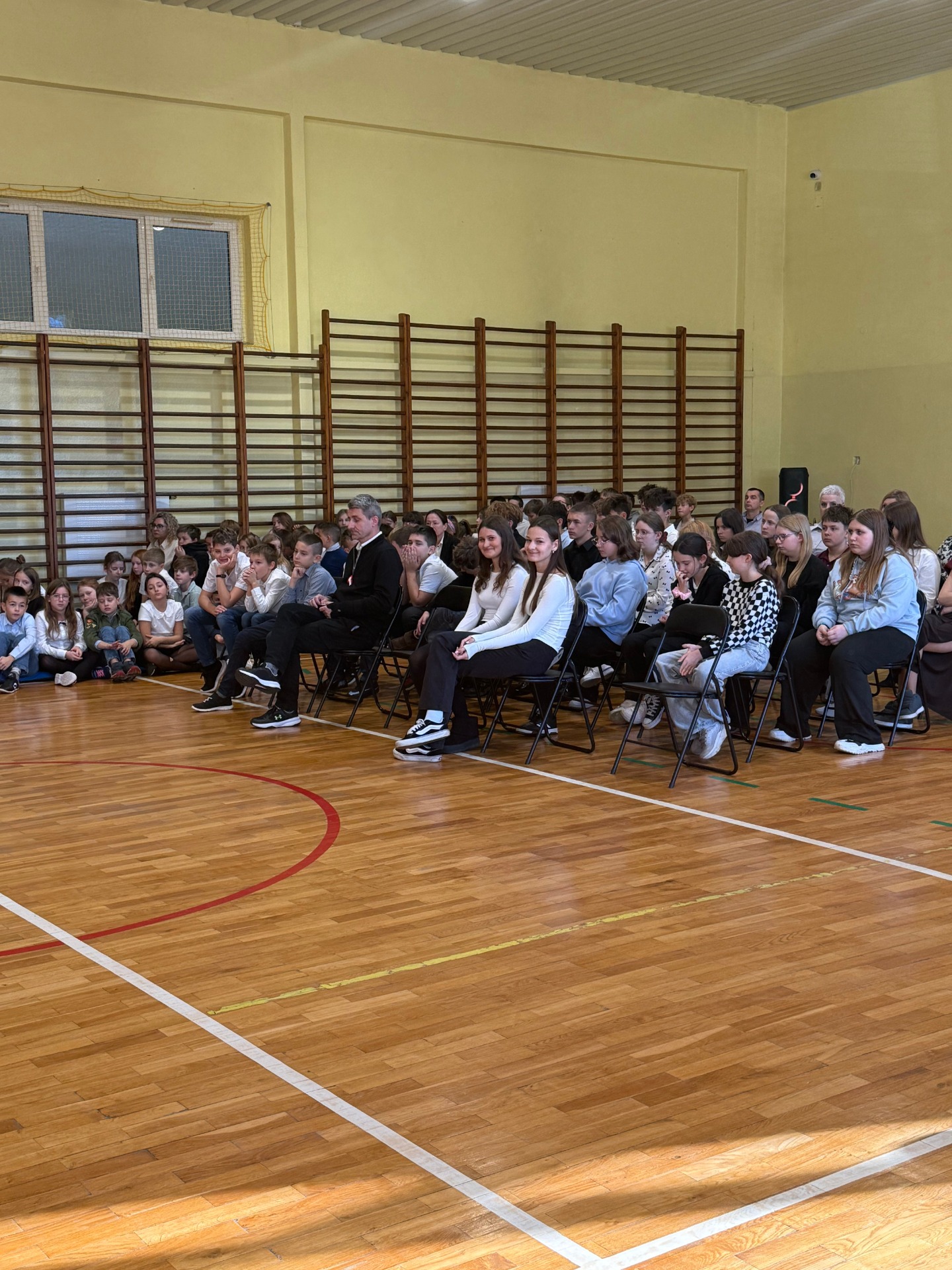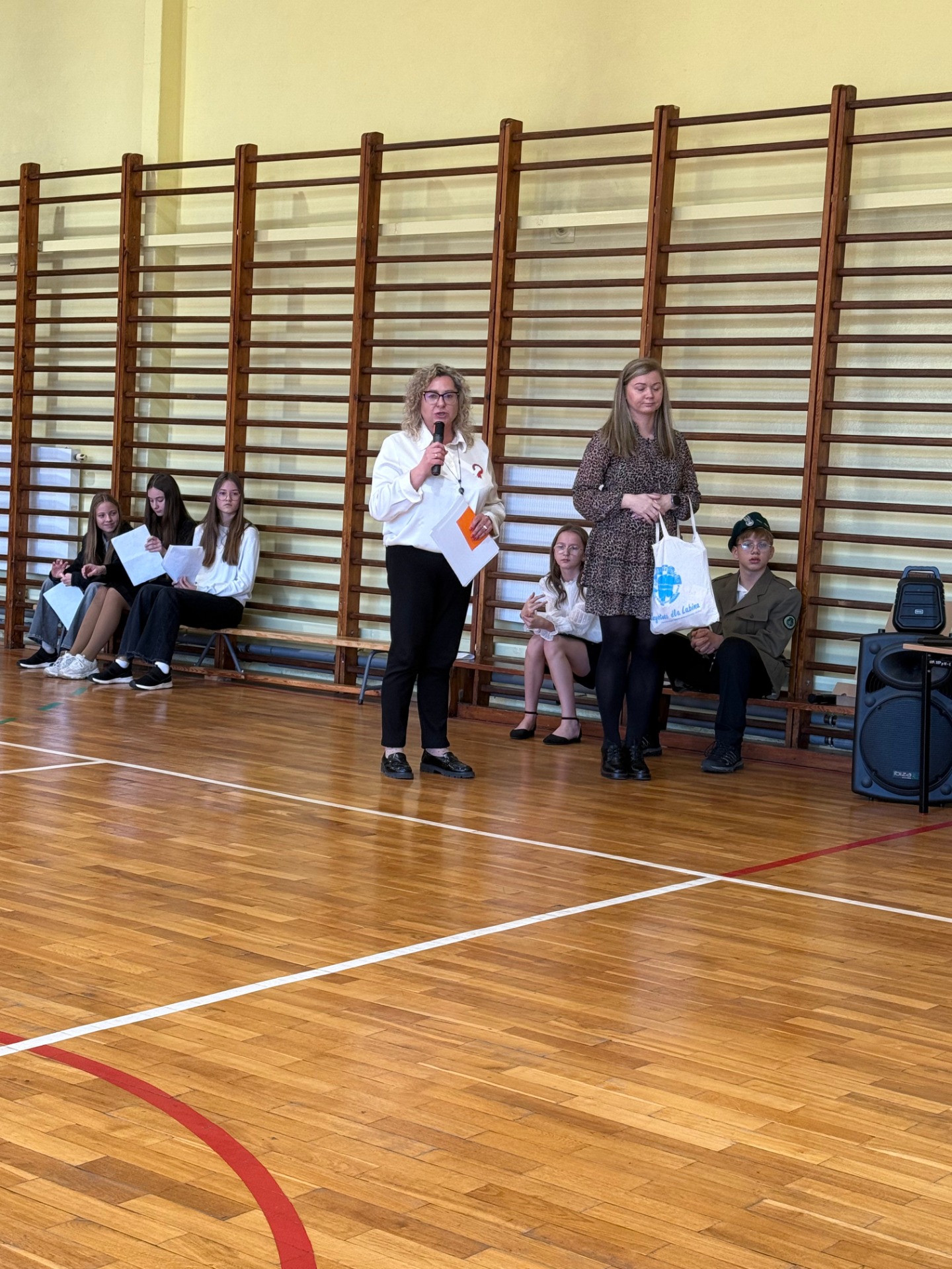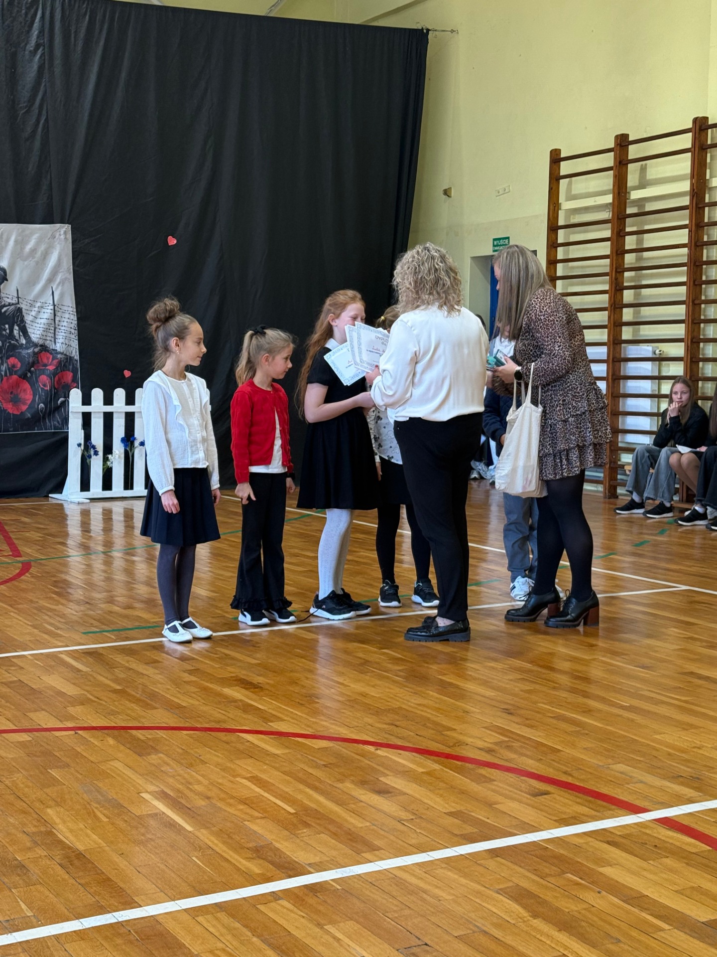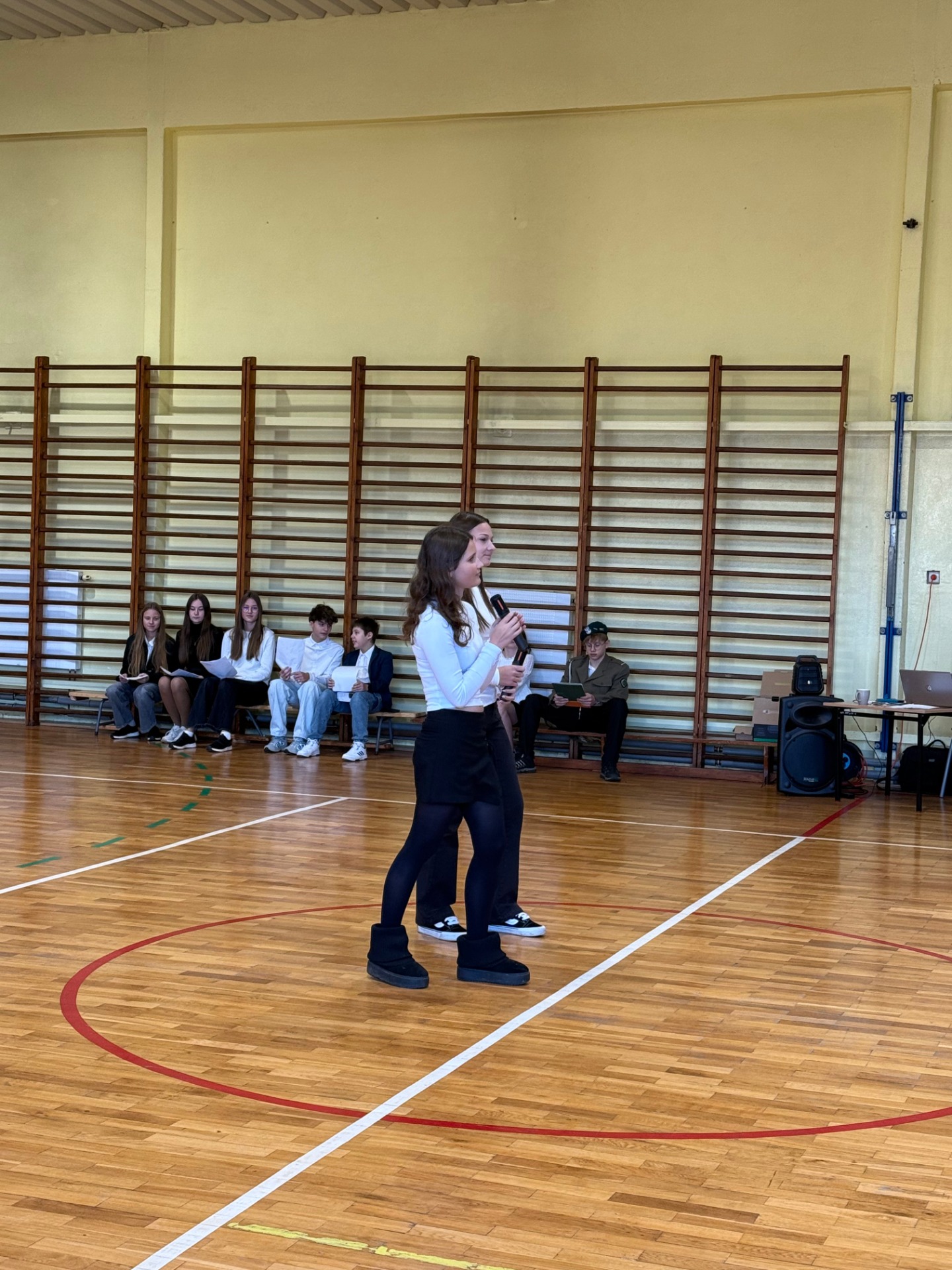 Apel uświetnił również taniec z biało-czerwonymi flagami, który symbolizował radość, nadzieję i dumę narodową. Nie zabrakło także śpiewu pieśni patriotycznych, które rozbrzmiewały w całej szkole, wprowadzając wszystkich w wyjątkowy nastrój wspólnego świętowania.