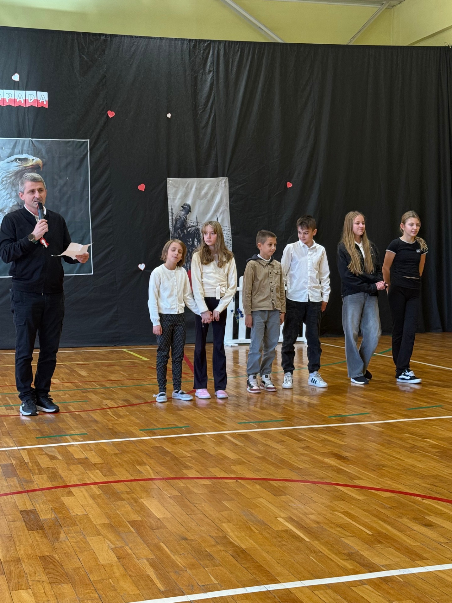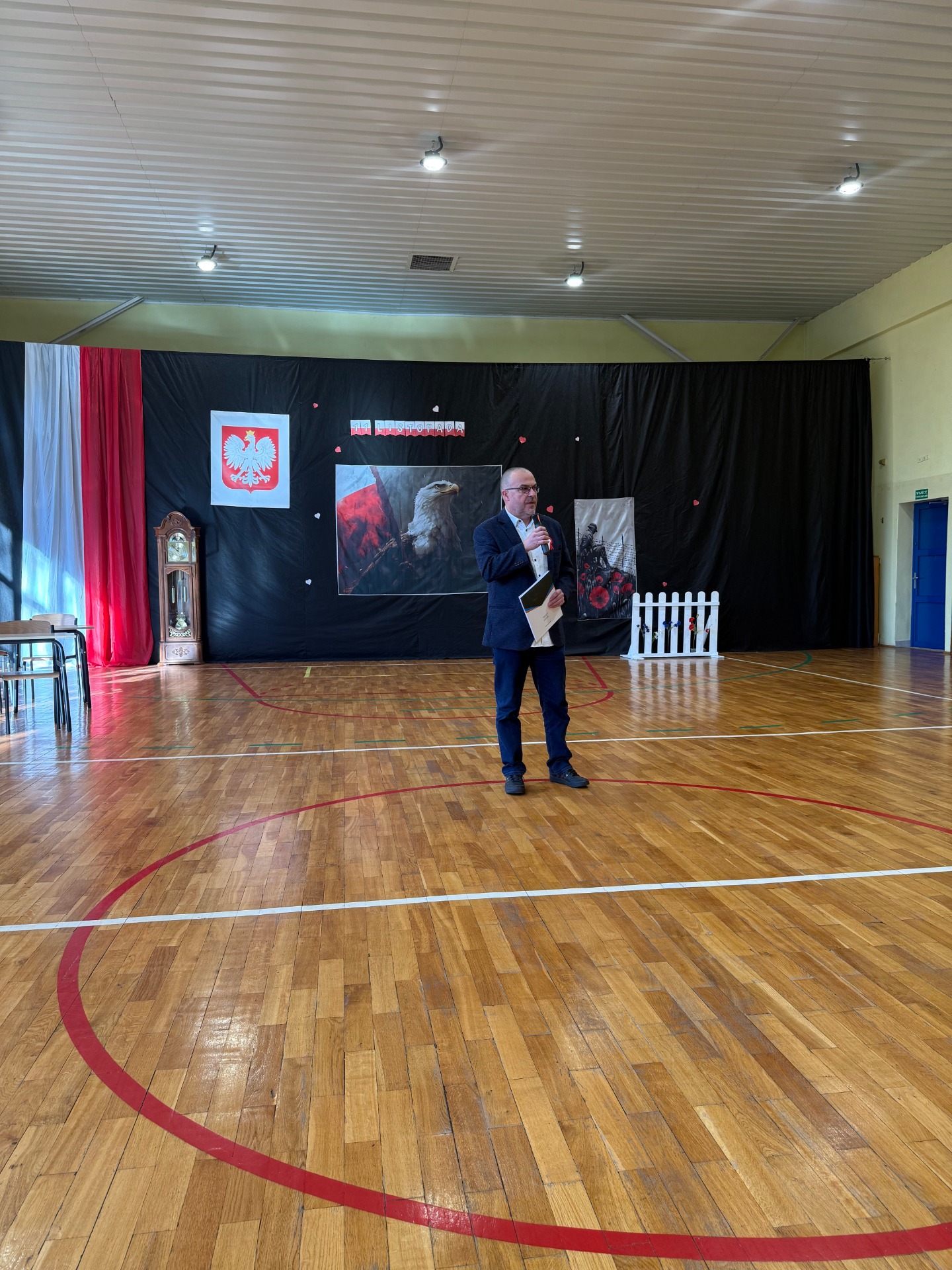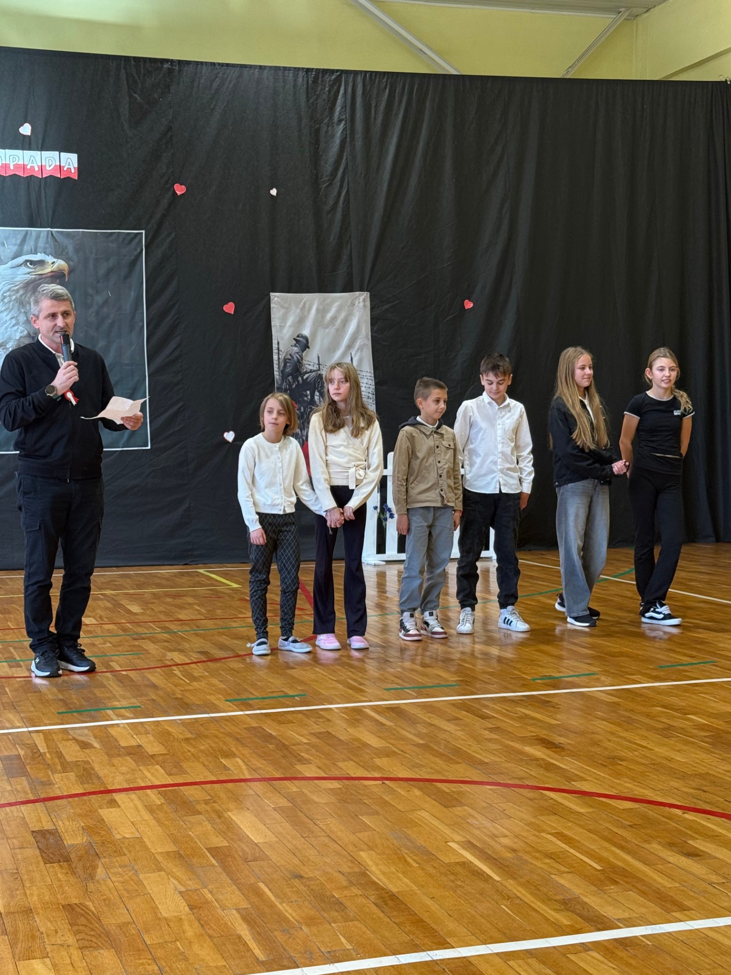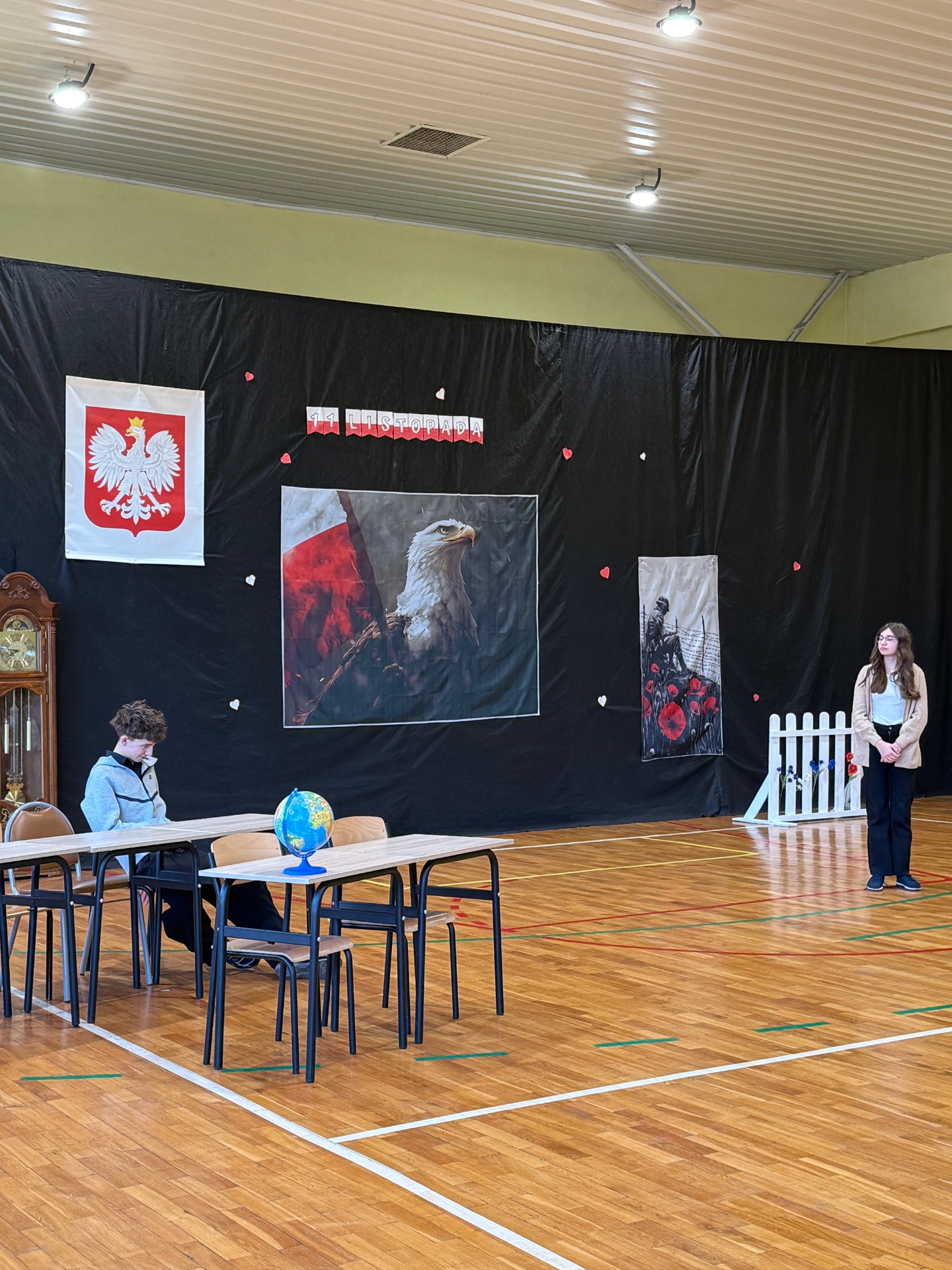 Podczas uroczystości uczniowie zaprezentowali wzruszające przedstawienie pt. „Zegar z Mazurkiem Dąbrowskiego”, które w piękny sposób przybliżyło historię odzyskania przez Polskę niepodległości. Scenki, pełne emocji i refleksji, przypomniały wszystkim, jak wiele zawdzięczamy tym, którzy walczyli o wolność naszego kraju.
