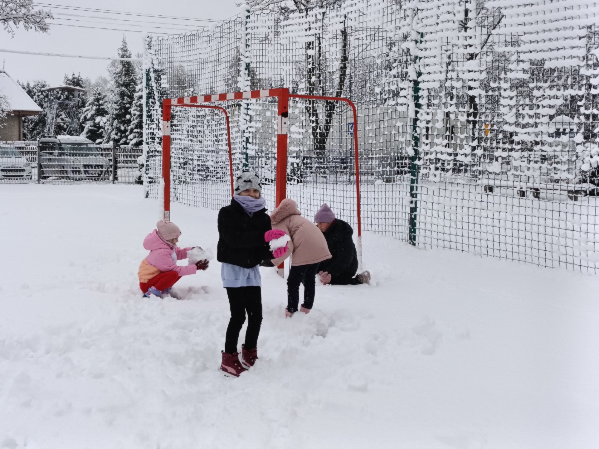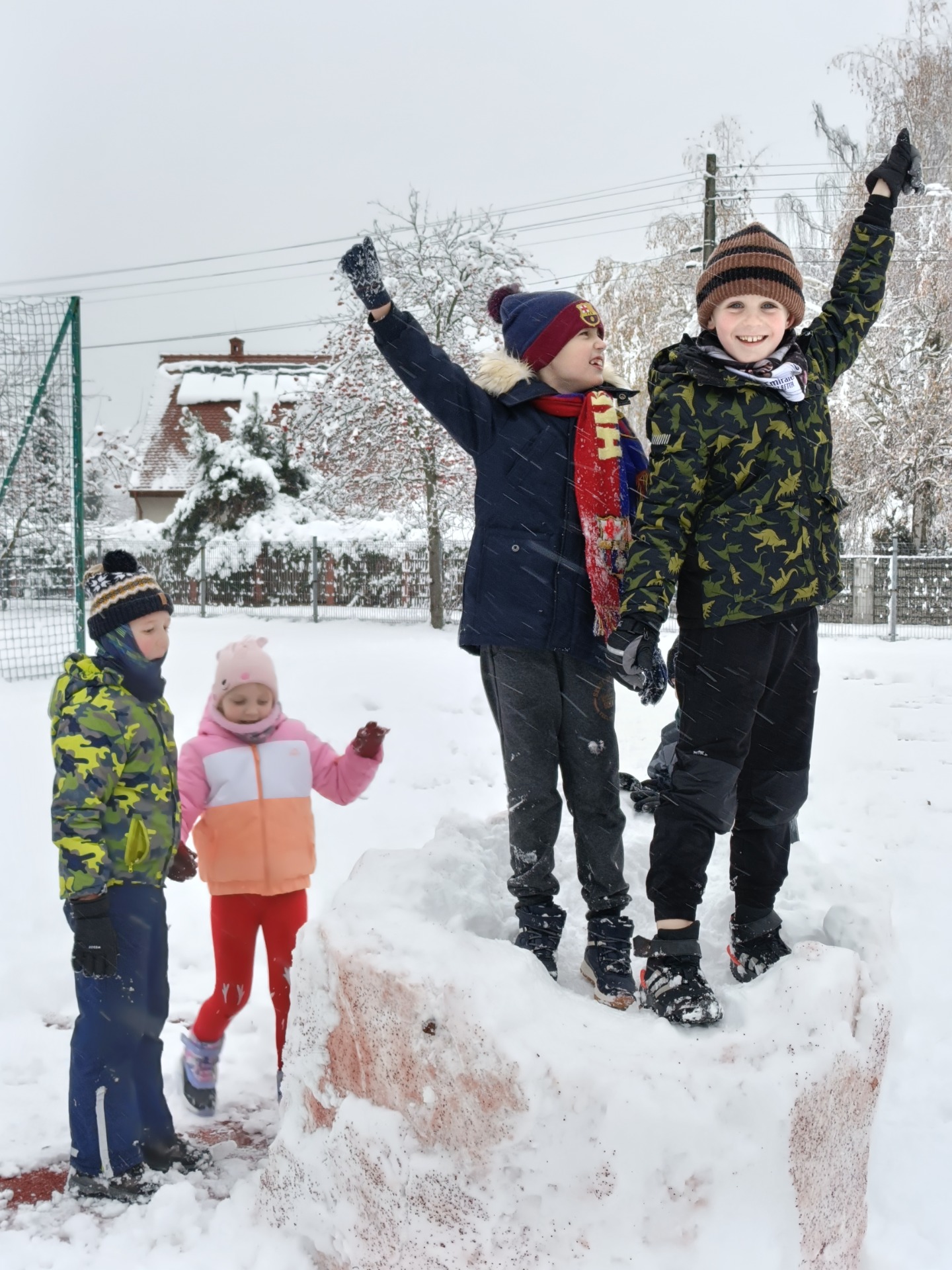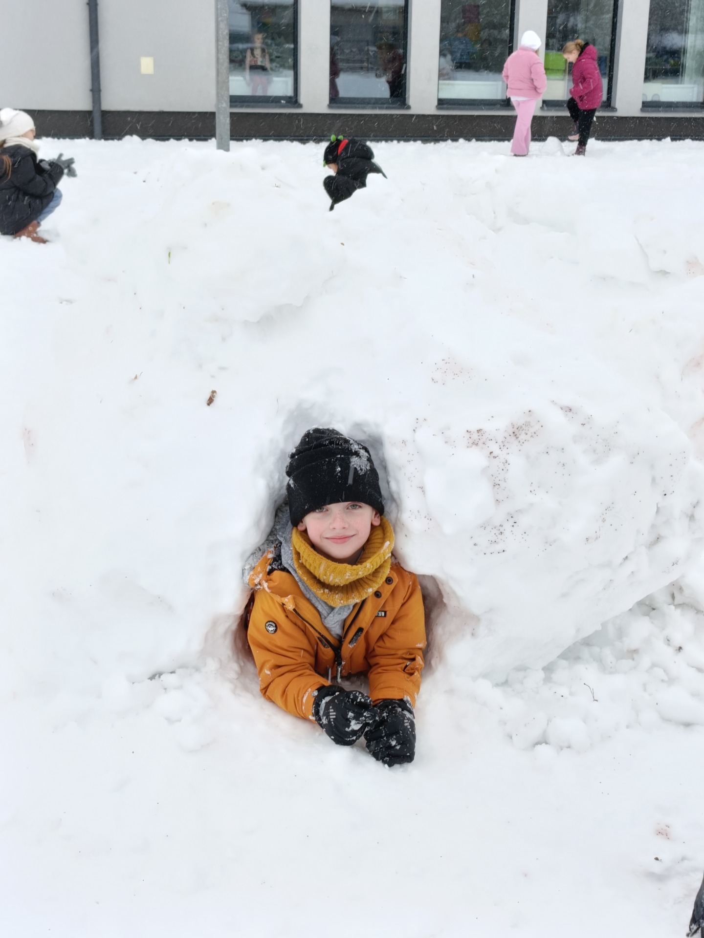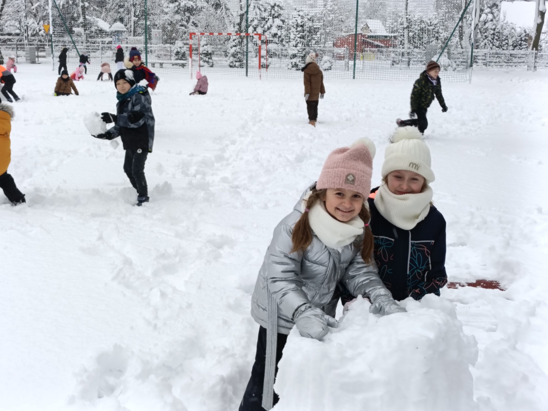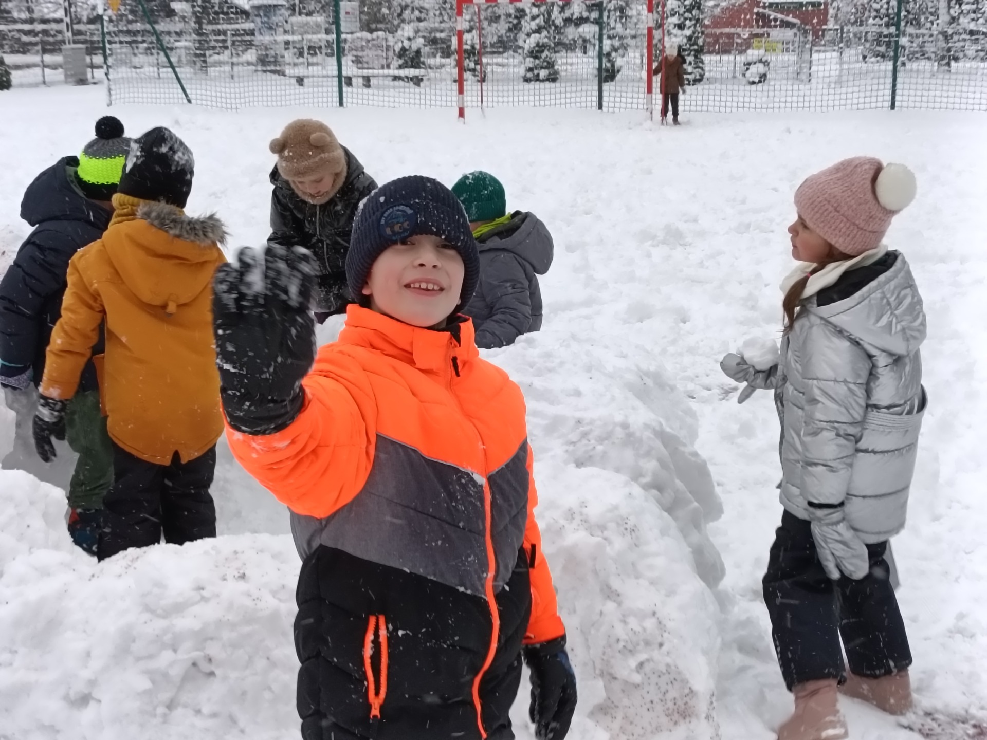Pierwszy śnieg tej zimy sprawił dzieciom ogromną radość! Uczniowie chętnie skorzystali z okazji i bawili się na świeżym powietrzu. Powstały wspaniałe bałwany, igloo oraz ogromne