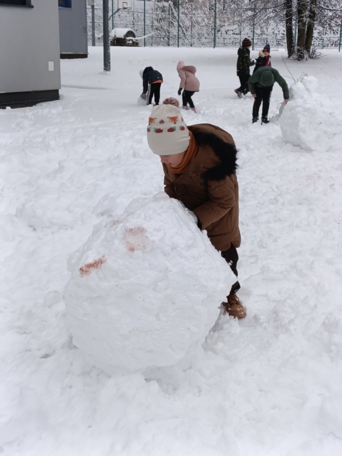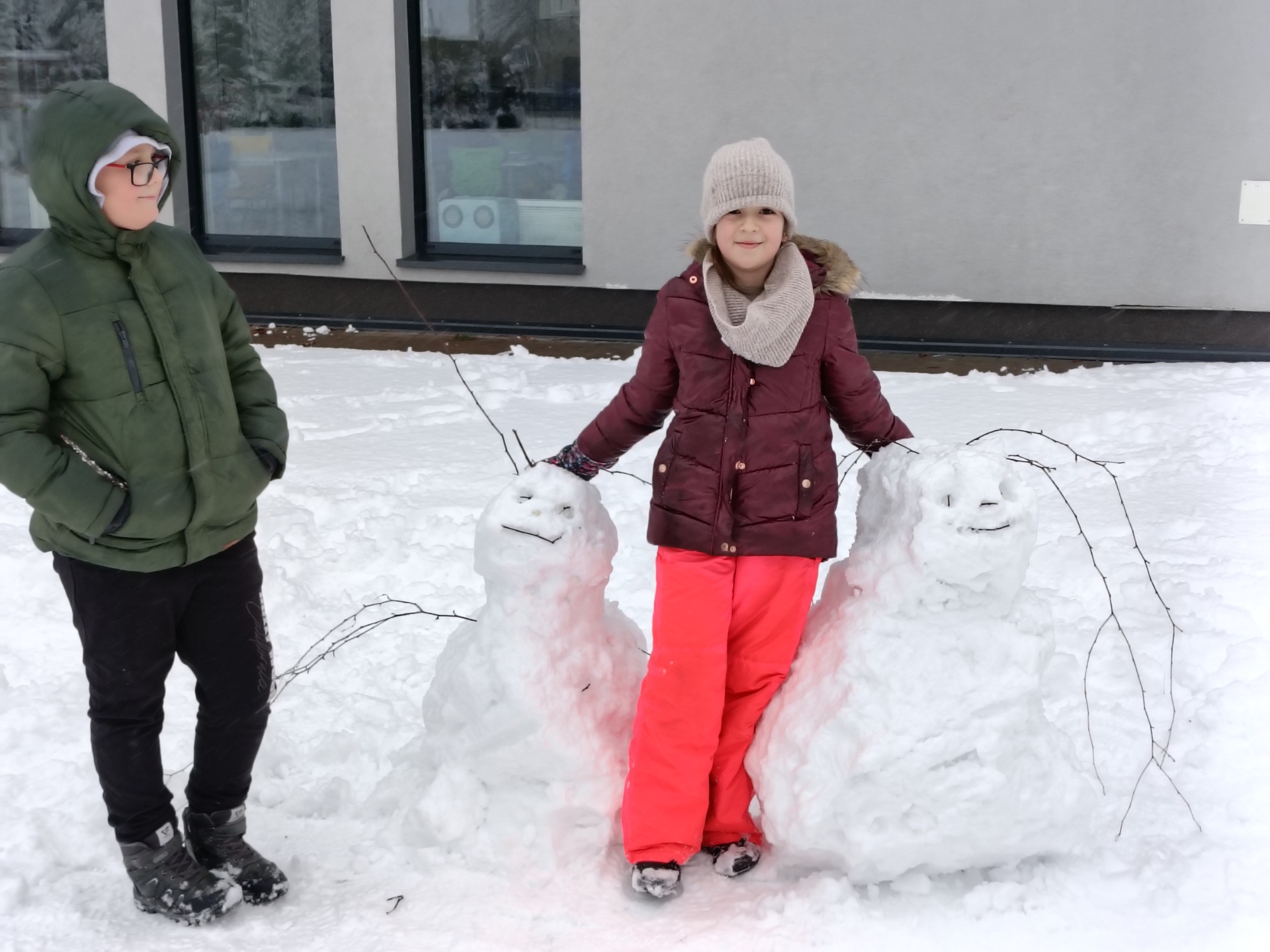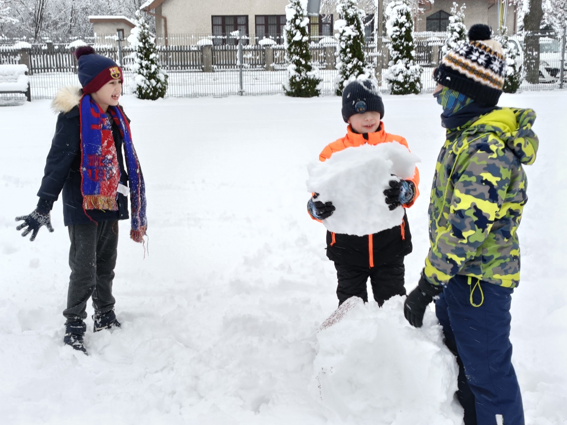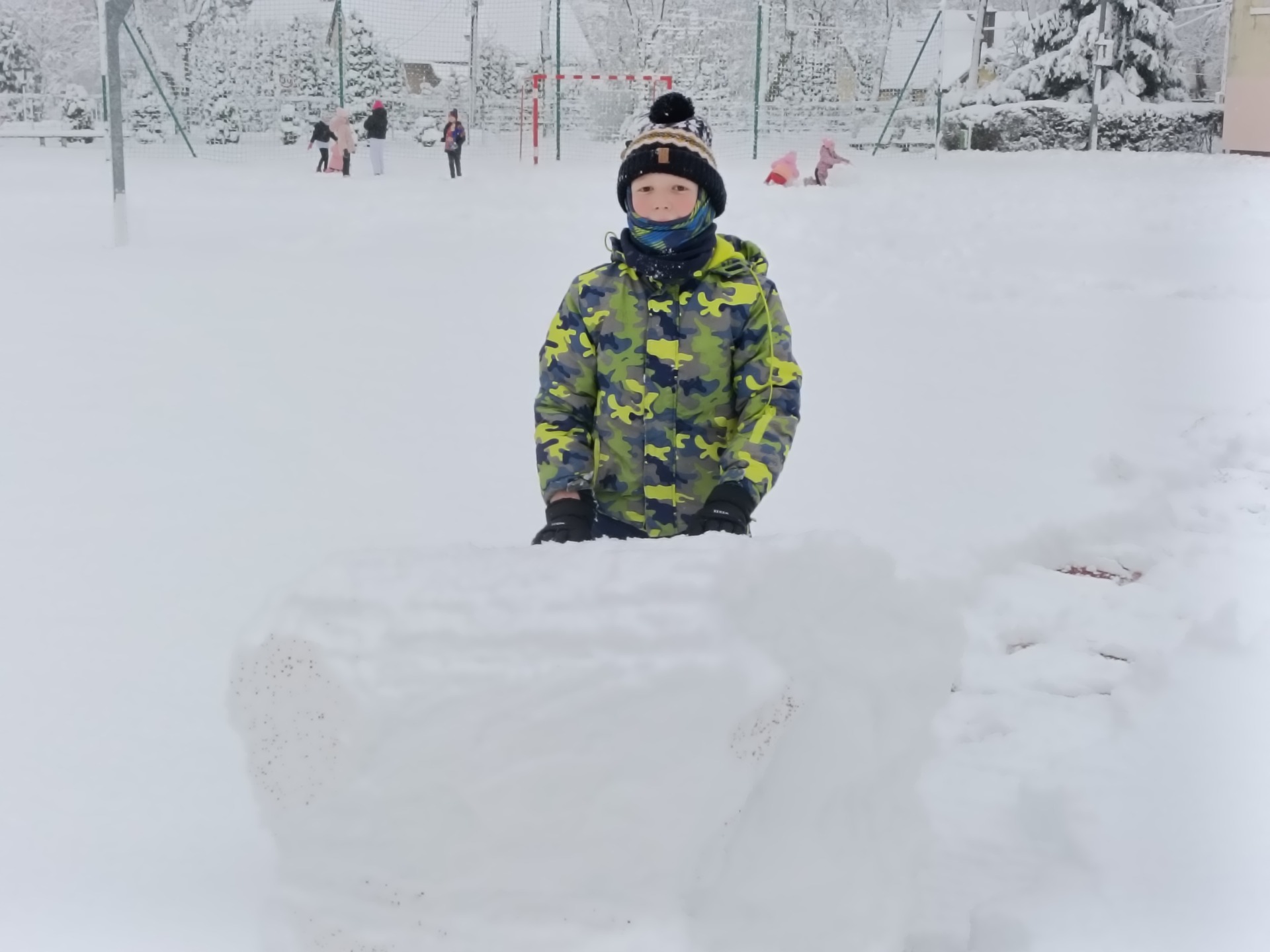 Pierwszy śnieg tej zimy sprawił dzieciom ogromną radość! Uczniowie chętnie skorzystali z okazji i bawili się na świeżym powietrzu. Powstały wspaniałe bałwany, igloo oraz ogromne