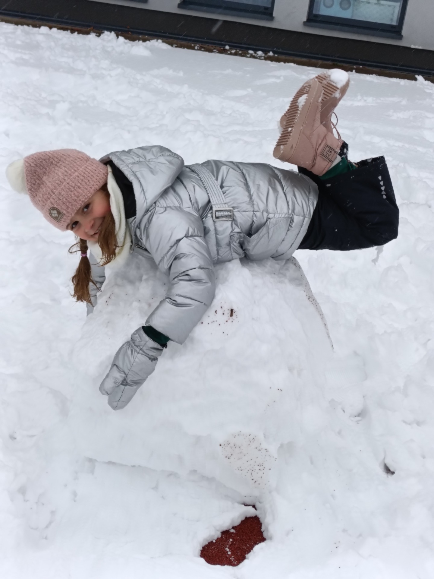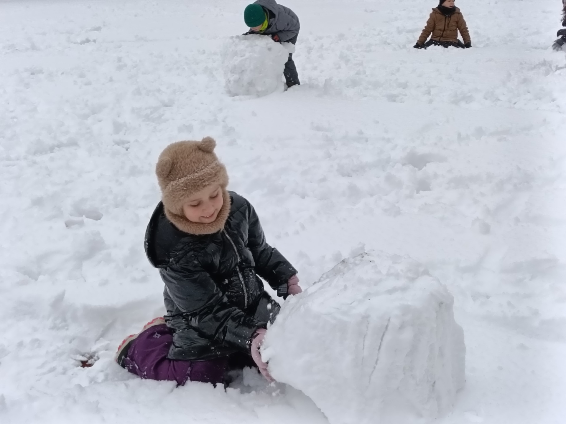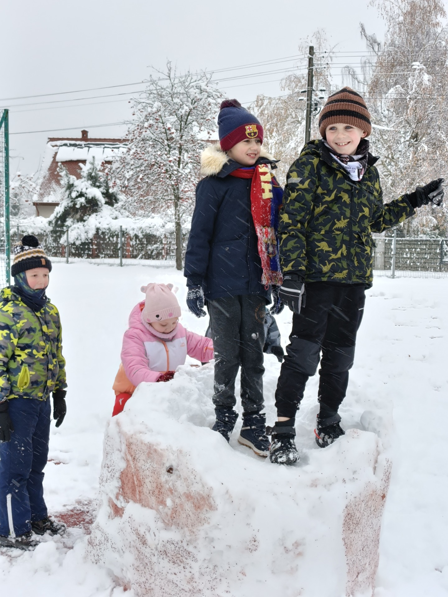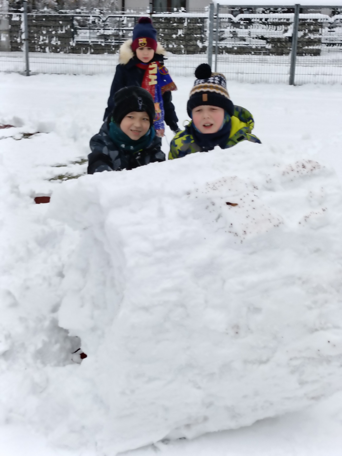 Pierwszy śnieg tej zimy sprawił dzieciom ogromną radość! Uczniowie chętnie skorzystali z okazji i bawili się na świeżym powietrzu. Powstały wspaniałe bałwany, igloo oraz ogromne