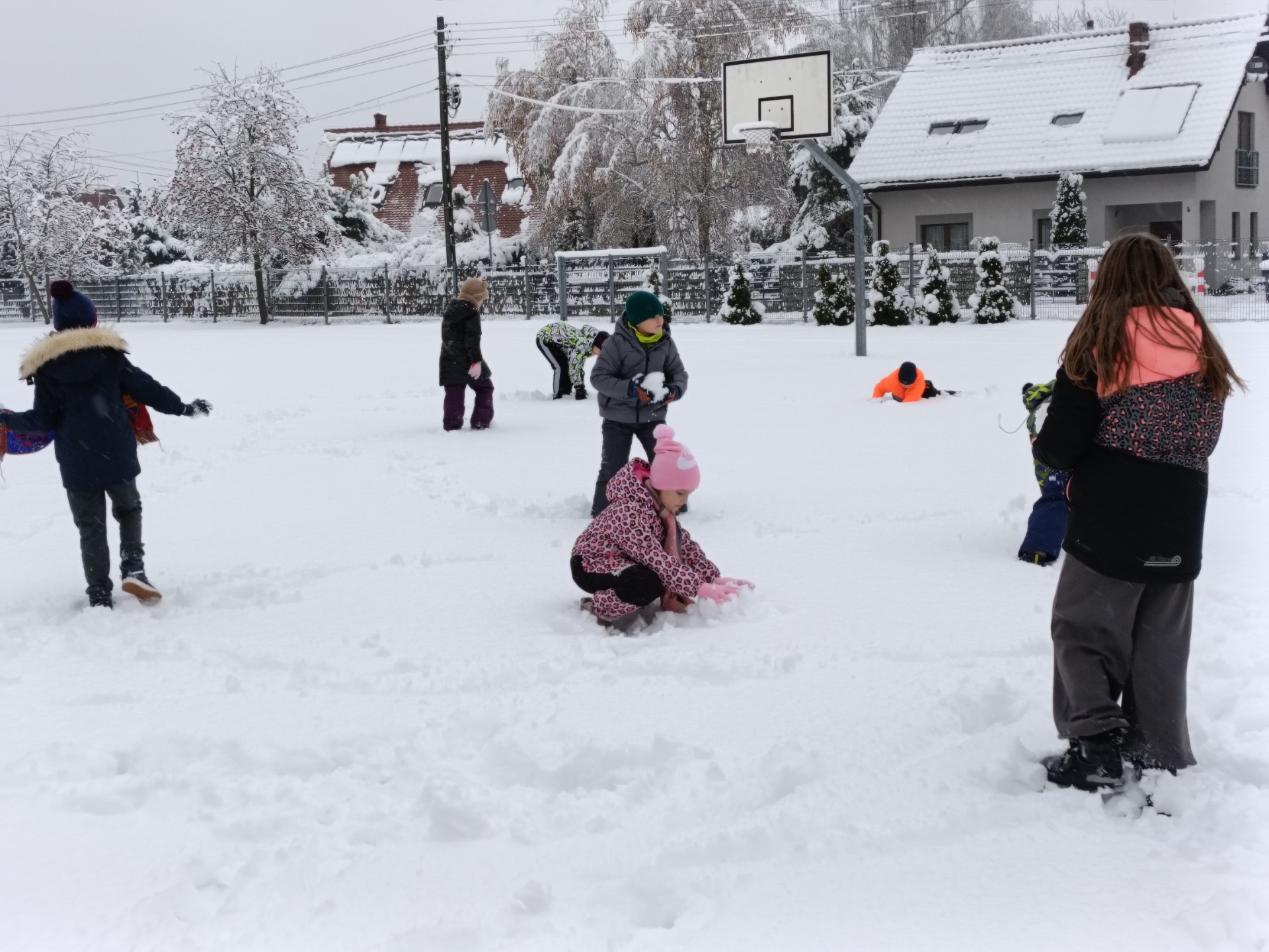 Pierwszy śnieg – zimowa zabawa na szkolnym boisku