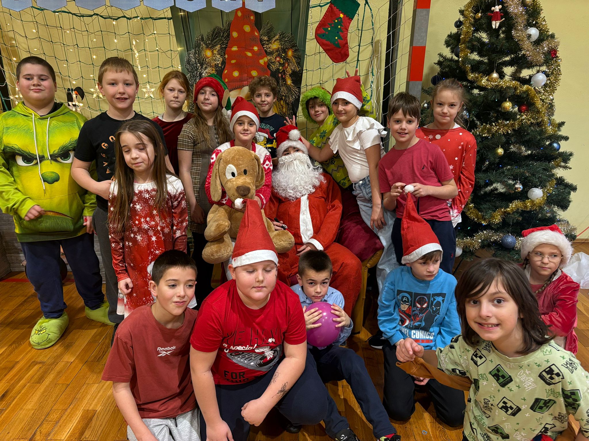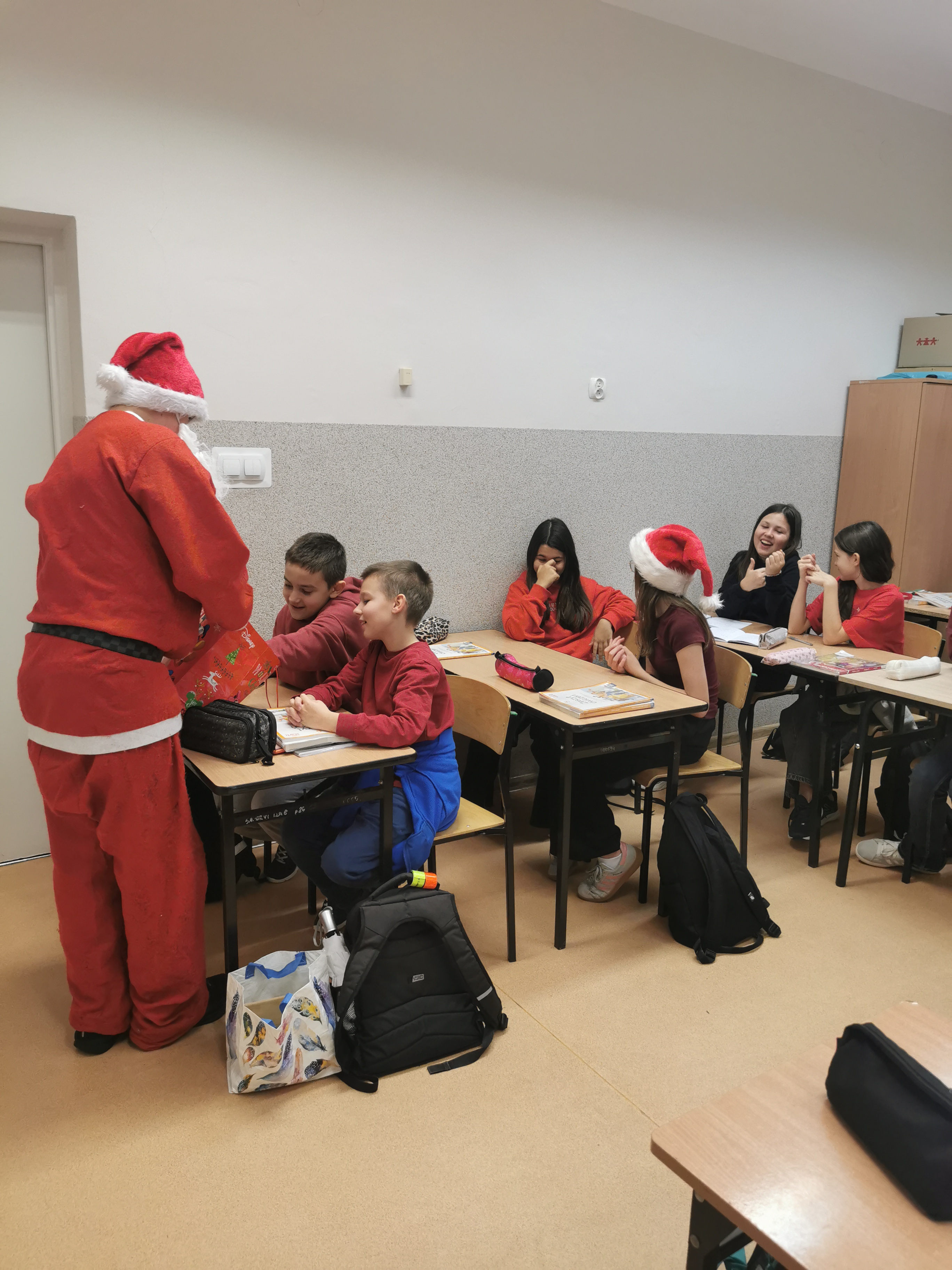 Największą niespodzianką był Święty Mikołaj, który odwiedził naszą szkołę i rozdał dzieciom słodkie upominki.
