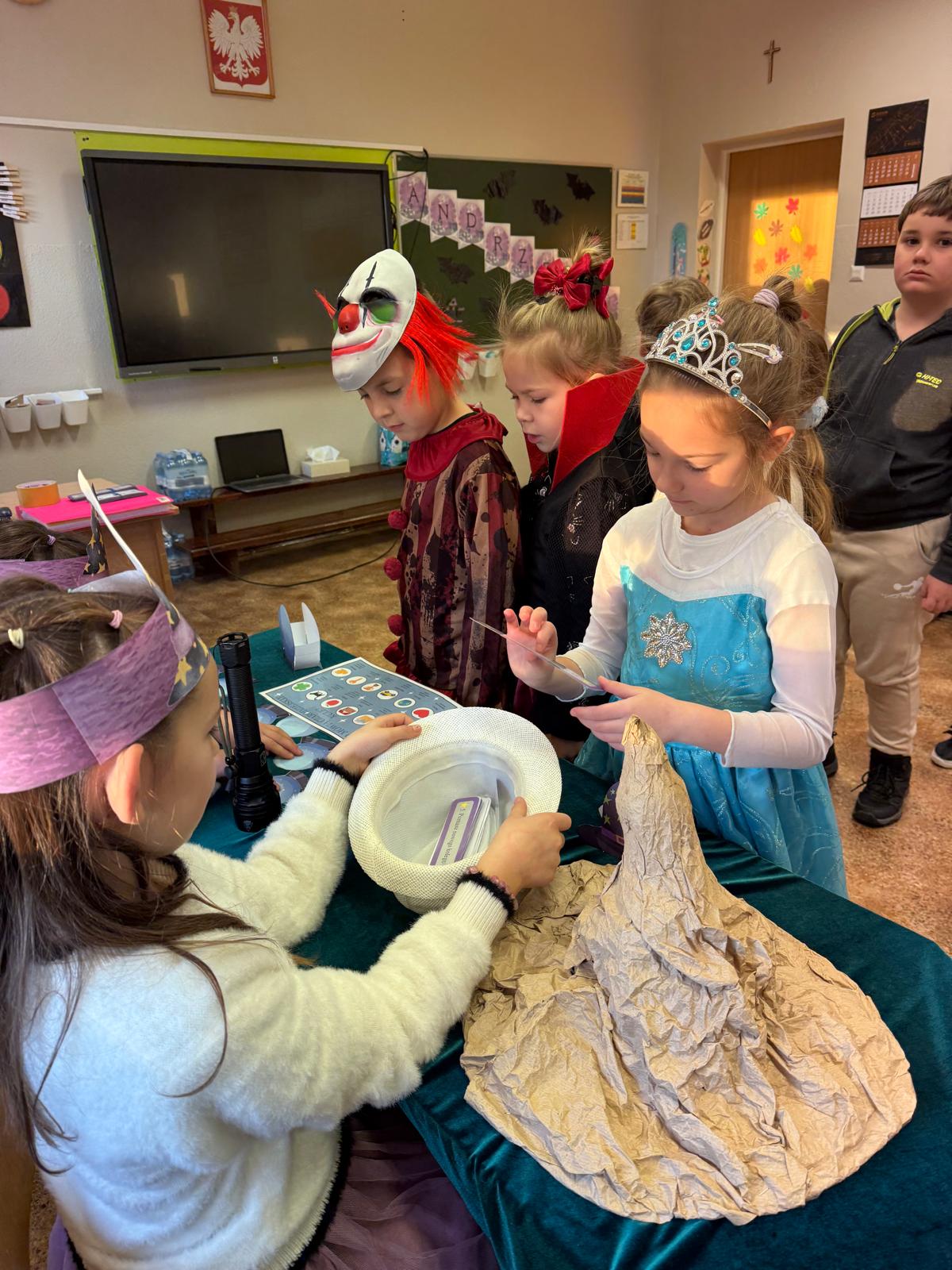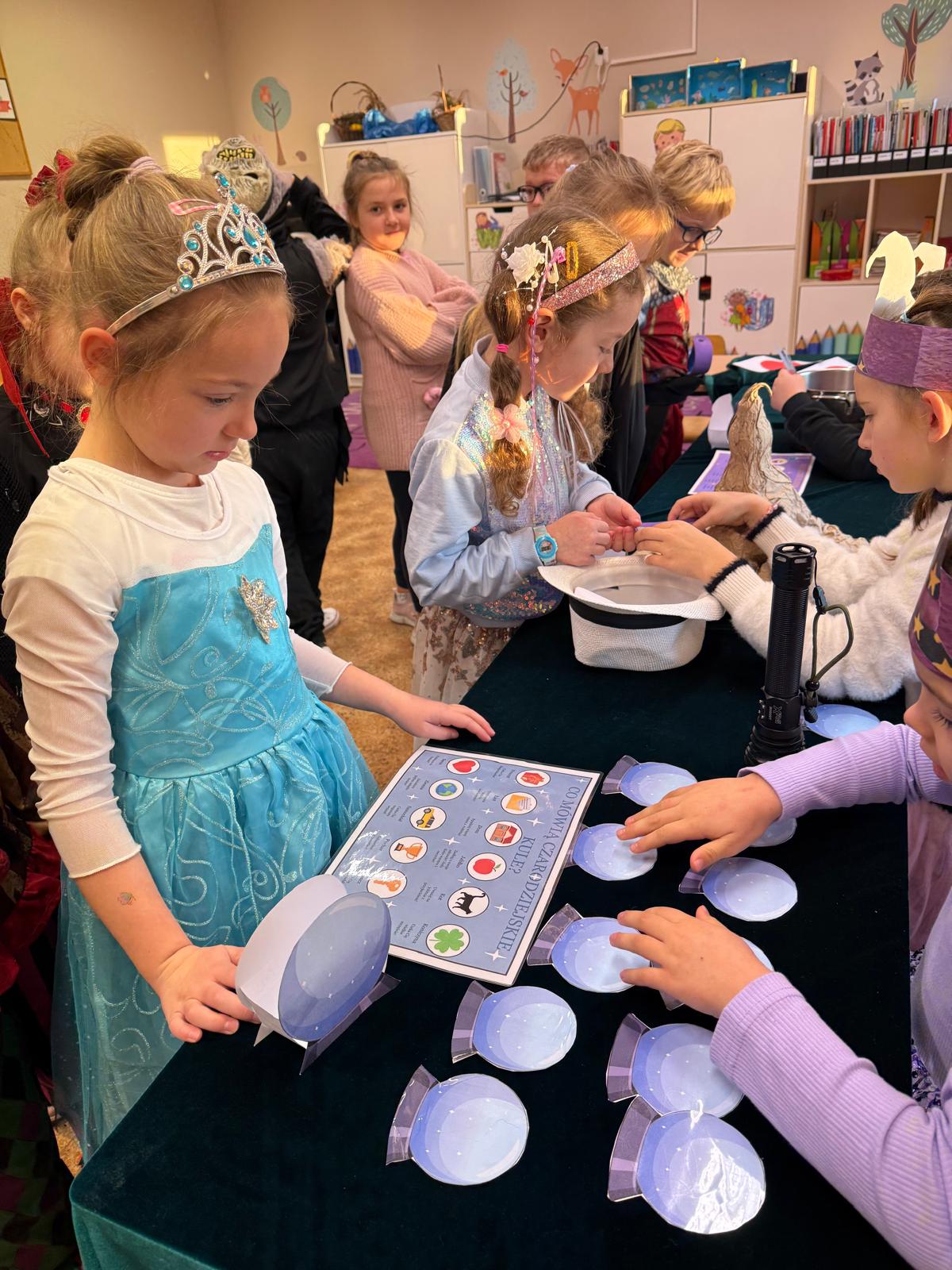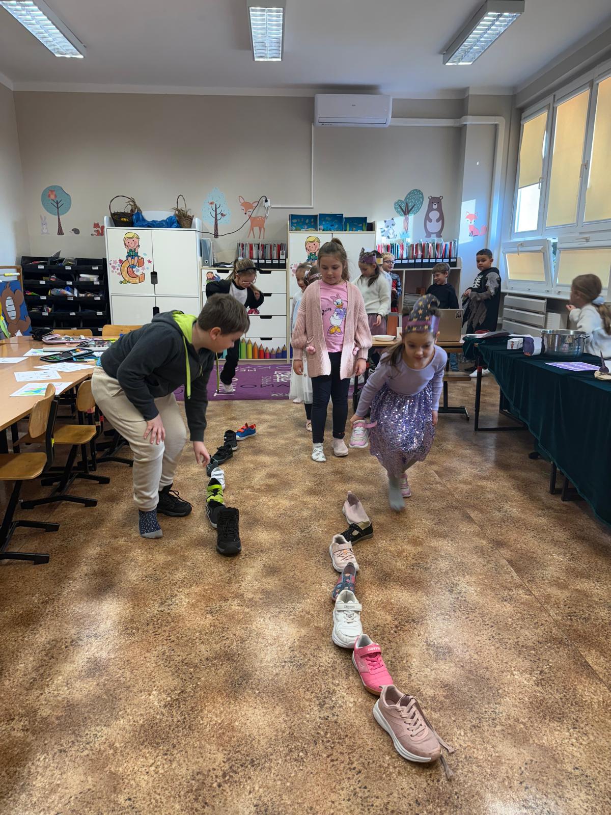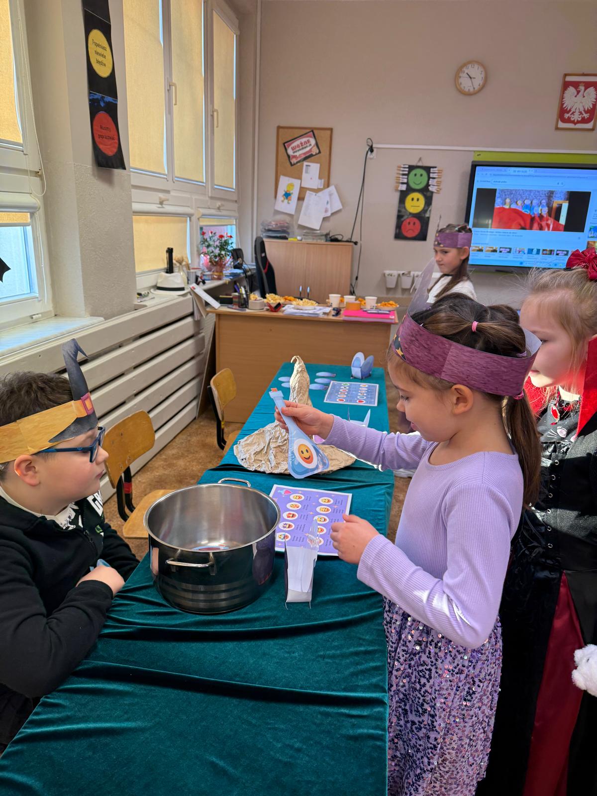 28 listopada uczniowie klasy 1A obchodzili Andrzejki. Na początku obejrzeli film edukacyjny na temat wróżb, zwyczajów i obrzędów związanych z tym świętem. Następnie rozpoczęła się zabawa pełna andrzejkowych wróżb. Była wróżba z magicznej kuli, czarodziejskiego kapelusza, przygotowano również magiczny eliksir, który przewidywał, co może spotkać uczniów w najbliższej przyszłości. Celowali w papierowe serca, aby wylosować imię przyszłego męża lub żony. Nie zabrakło tradycyjnej zabawy z przesuwaniem butów przez całą salę – kto pierwszy dotrze do progu, ten jako pierwszy weźmie ślub. Rzucali również kostkami, które miały przewidzieć jakie zasoby lub umiejętności będą mieć w przyszłości. Oczywiście nie obyło się bez zagadek związanych Andrzejkami 😊.