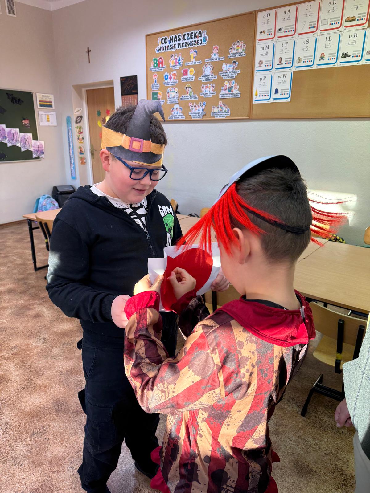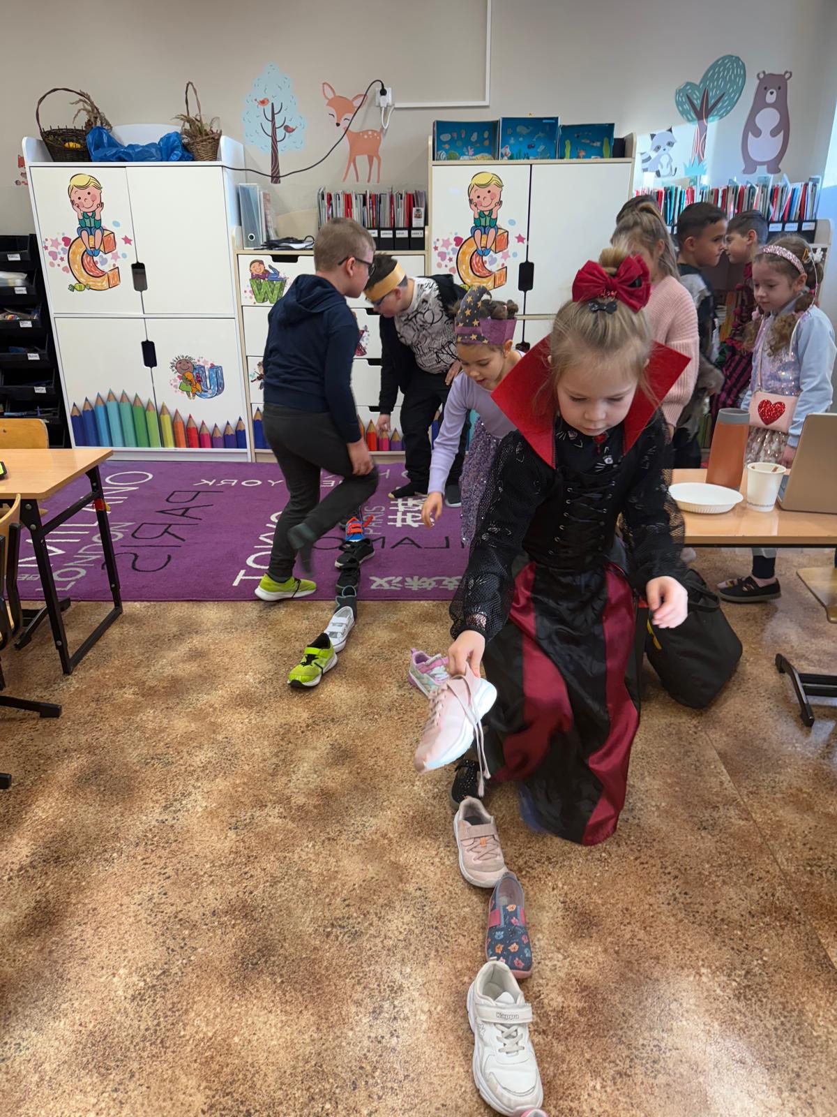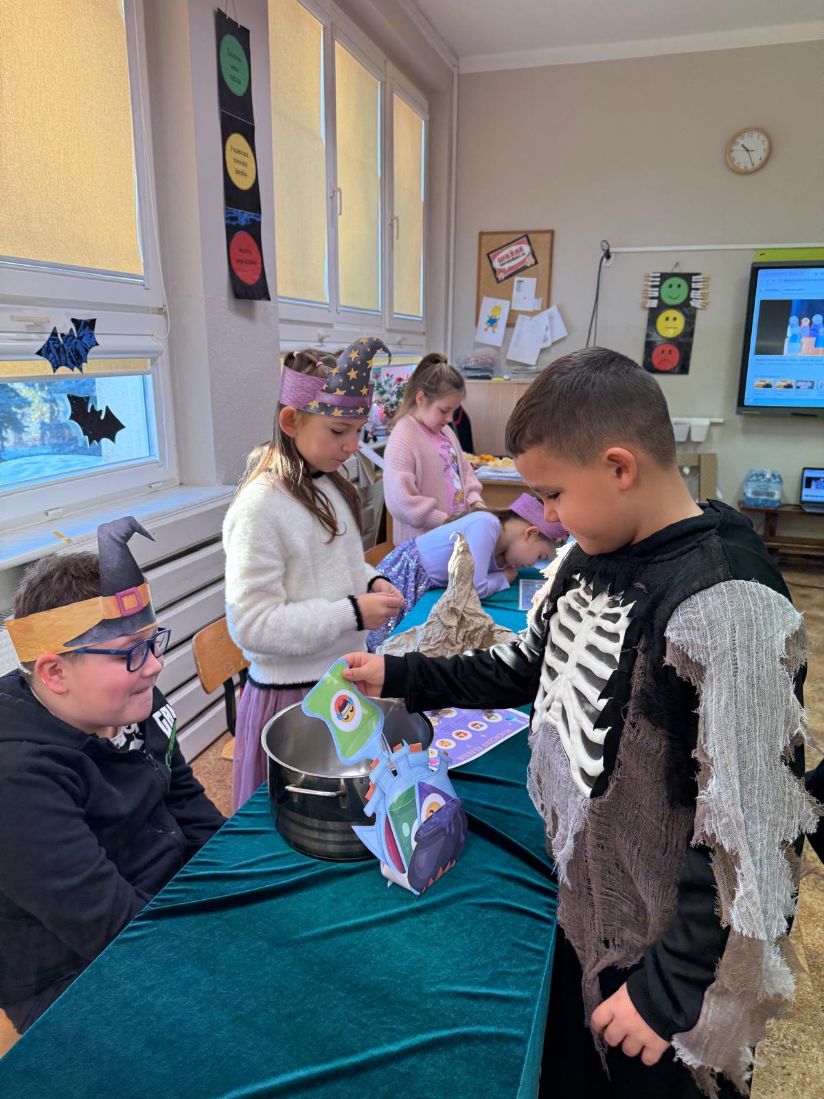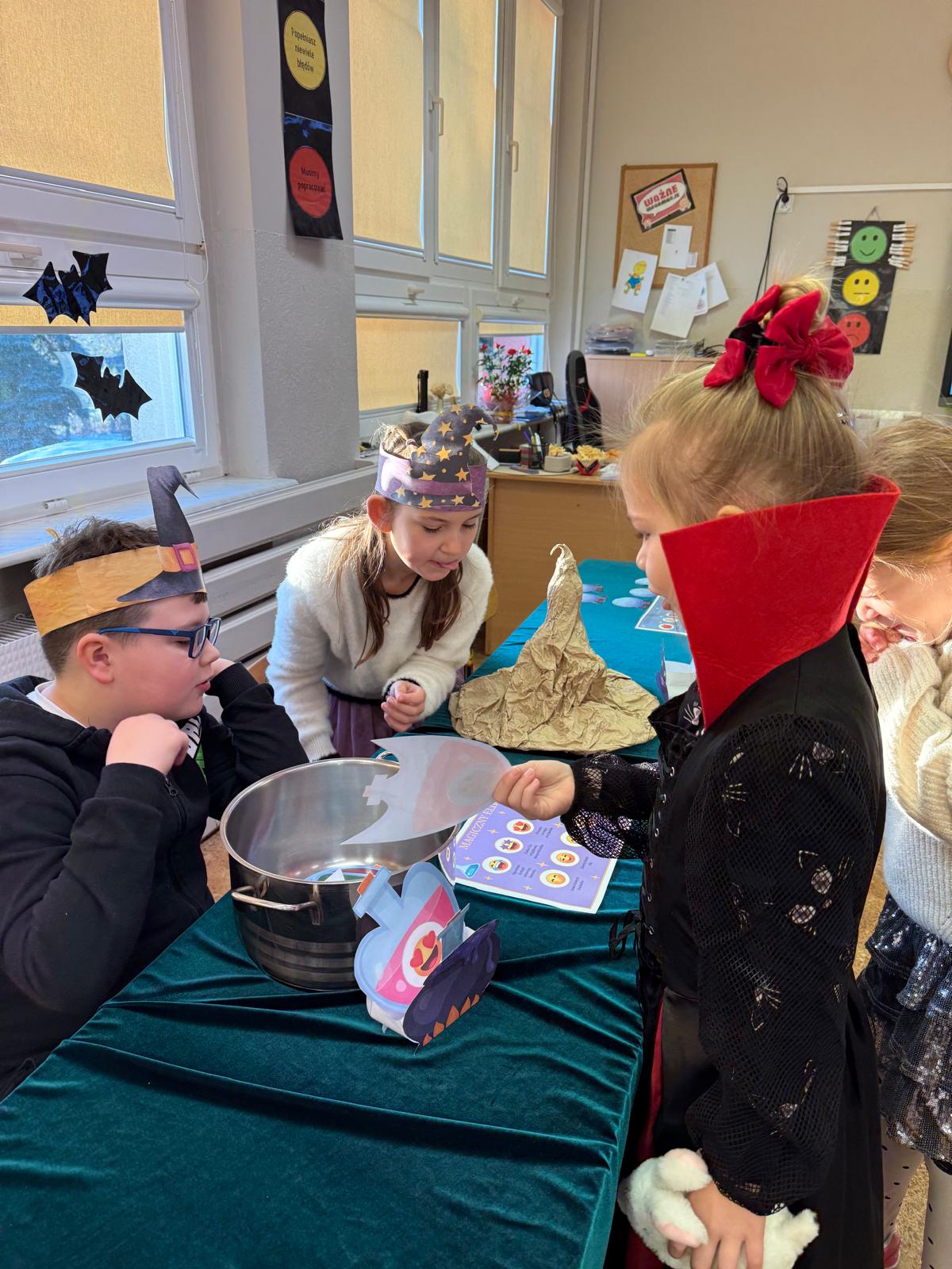 28 listopada uczniowie klasy 1A obchodzili Andrzejki. Na początku obejrzeli film edukacyjny na temat wróżb, zwyczajów i obrzędów związanych z tym świętem. Następnie rozpoczęła się zabawa pełna andrzejkowych wróżb. Była wróżba z magicznej kuli, czarodziejskiego kapelusza, przygotowano również magiczny eliksir, który przewidywał, co może spotkać uczniów w najbliższej przyszłości. Celowali w papierowe serca, aby wylosować imię przyszłego męża lub żony. Nie zabrakło tradycyjnej zabawy z przesuwaniem butów przez całą salę – kto pierwszy dotrze do progu, ten jako pierwszy weźmie ślub. Rzucali również kostkami, które miały przewidzieć jakie zasoby lub umiejętności będą mieć w przyszłości. Oczywiście nie obyło się bez zagadek związanych Andrzejkami 😊.